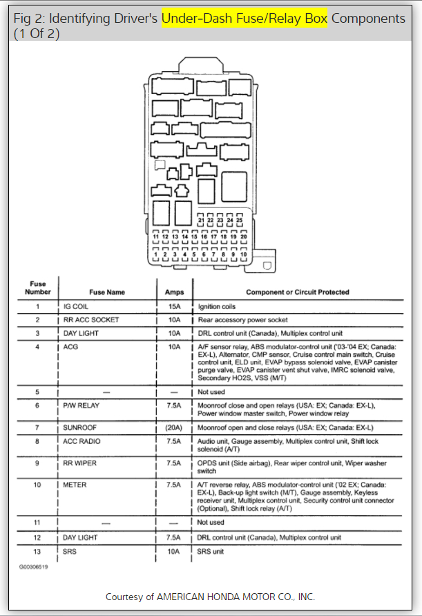 1 . Check the No. 12 (40A) fuse in the under-hood fuse/relay box, and the No. 14 (10A) fuse in the under-dash fuse/relay box.
