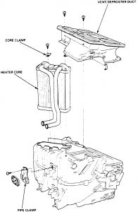Remove core clamp, then heater core.Do not bend inlet or outlet pipes during heater core removal .