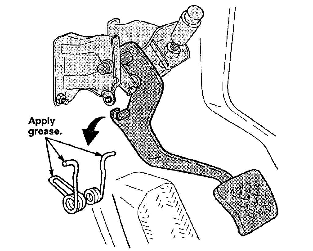 I attached a pic below of the spring I am referring to. Now, that should bring the pedal fully back to the clutch switch. Check to see if that is where the play is coming from, a broken spring.