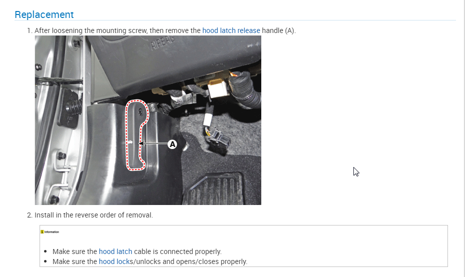 I took my car listed above to get an oil change. The guy working asked me to pop the hood, I pulled on the lever inside and nothing happened. He came over and was pulling on it. Still nothing as they were checking out the hood I kept pulling on the lever then it just popped right off. The guys said there is no cable available for them to pull on to open the hood. I need an oil change and have no idea what to do? Please help. Thanks!
