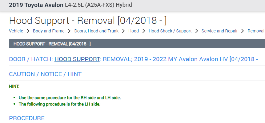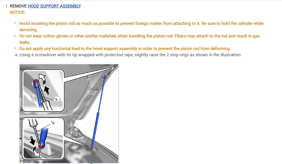 I attached the directions below for the removal of the support strut. Installation is the reverse of removal.
