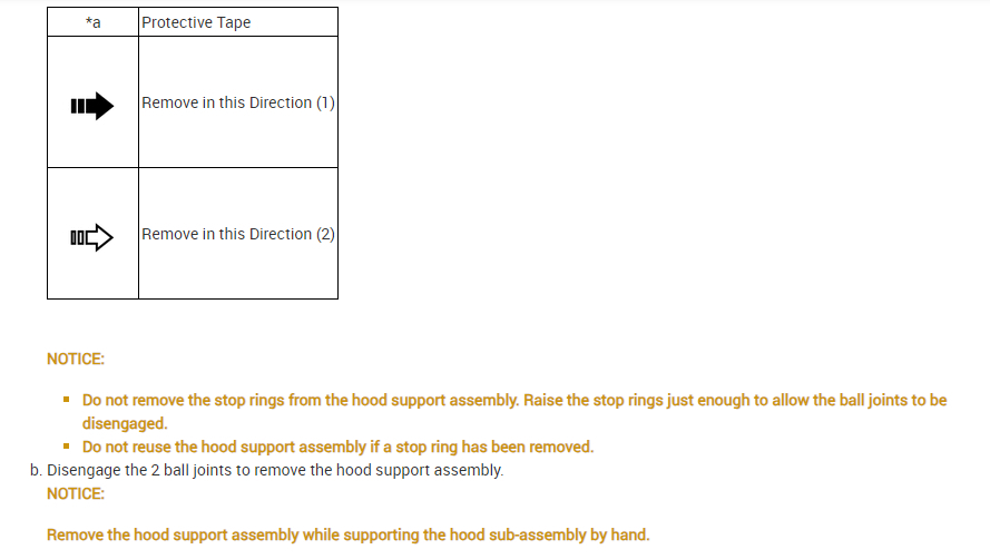 When you do this, realize that once it is removed, the hood will instantly fall closed, so support it and protect your hands, fingers, and anything that can be hit by the hood.