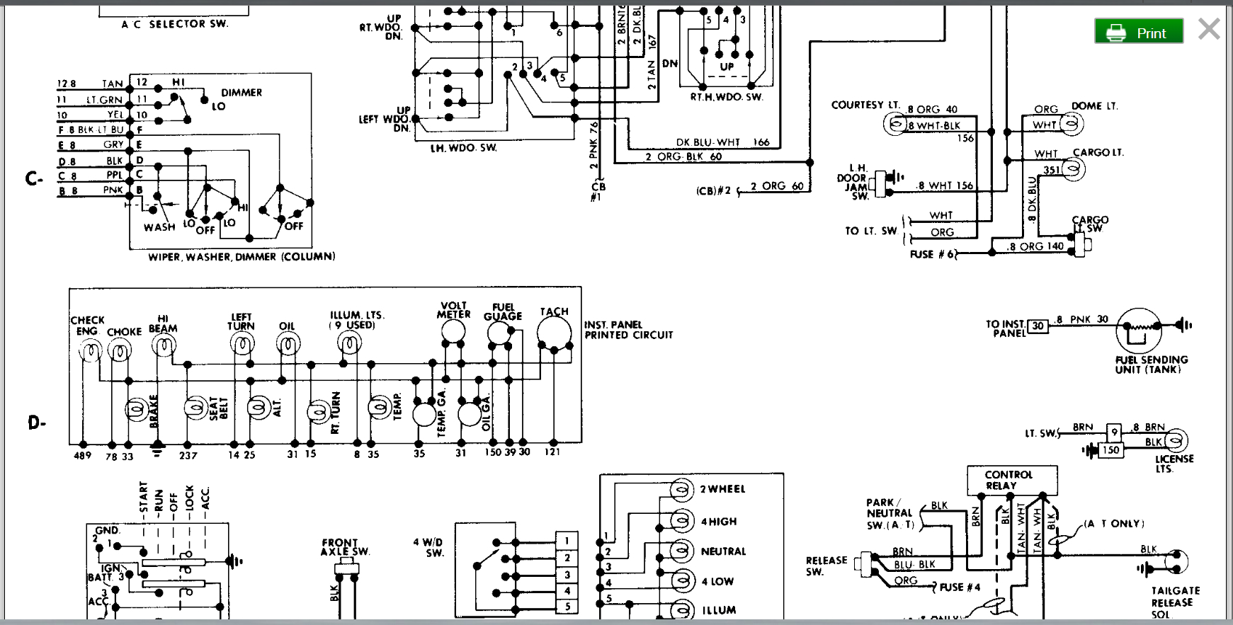 First. All fusible links and fuses checked and taken care of. Brand new battery and starter. I put the wrong cable on for like a two or three seconds. Getting power to fuse panel no power to switch or starter when key turned. Four rows on panel. One has power, three do not. One with power has no fuses. When you turn headlights on come on along with dash radio CD player but no door buzzer. When key turns nothing no click nothing doesn't make headlights dim or anything. No power getting to switch. Big plug that goes into panel looks like tar has been poured in it but it is not melted plastic doesn't smell burned or anything. So many questions don't know where to start. Any suggestions? As I said checked and took care of fusible links and fuses has new battery and starter. Help!