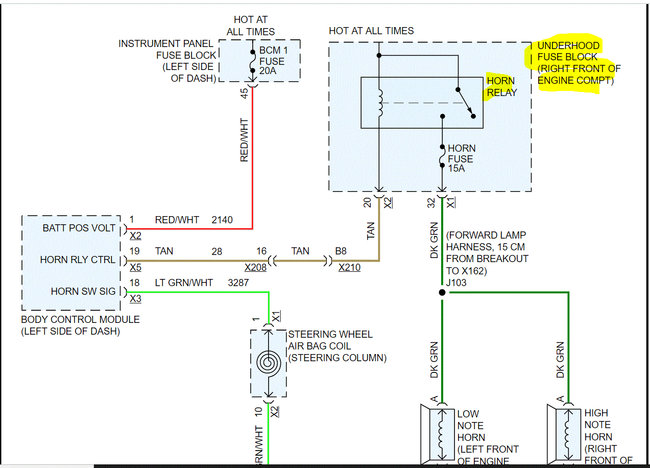 If you look below, I attached the wiring schematic for the horn circuit. I highlighted the relay. I had to cut the pic in half to make it readable, but I did overlap them so you can follow from one to the next.