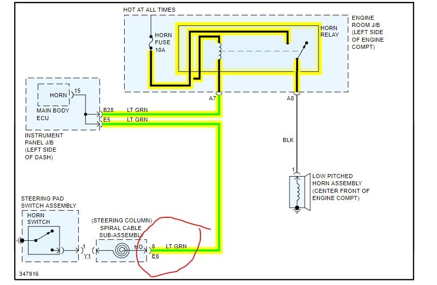 I would suspect the clock spring as the issue. I attached the wiring diagram for you to view.