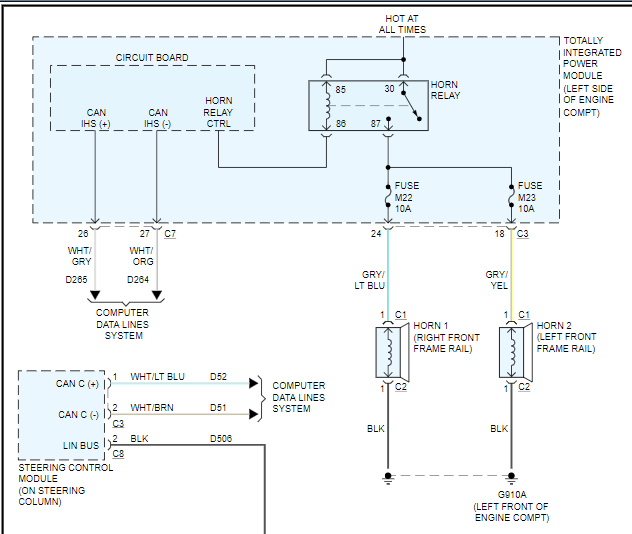 You can go to the horn relay in the power distribution center under the hood, unplug the relay, use a testlite, check for two hot terminals. It doesn't hurt to check the basics first.