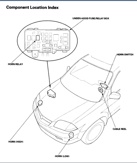 If you need this as a temporary fix while jump starting the battery here is the info you requested. I've attached a picture below of where the horn relay is located in the under hood fuse, relay box. Hope this helps and thanks for using 2CarPros.