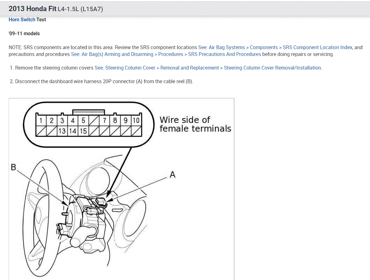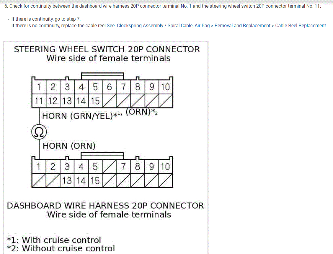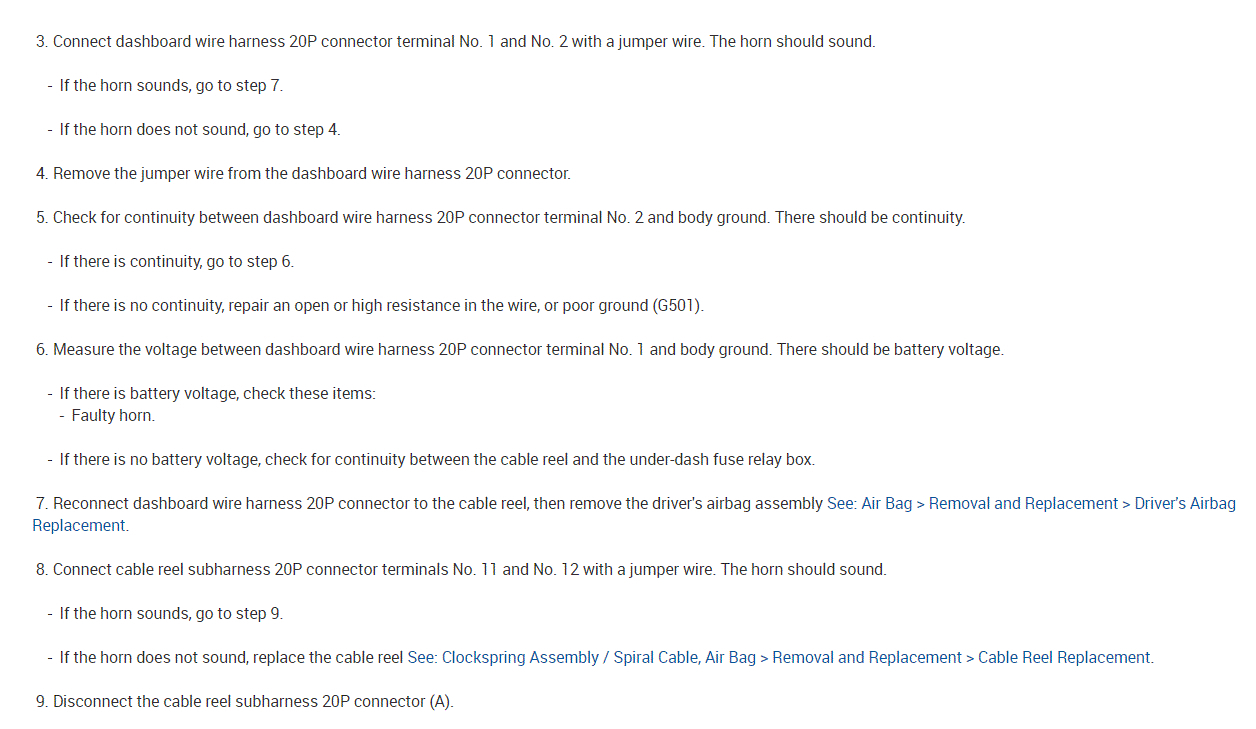 What I suggest is to check the horn switch before replacing the clock spring. If you look at the remaining pictures, I included directions for testing specific to this vehicle. Let me know if it is something you feel comfortable doing. These directions also check the clock spring (cable reel).