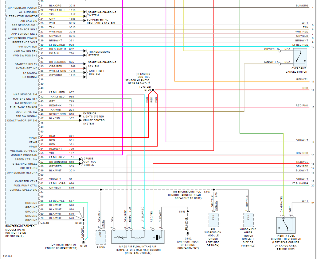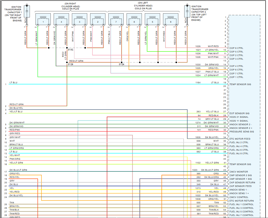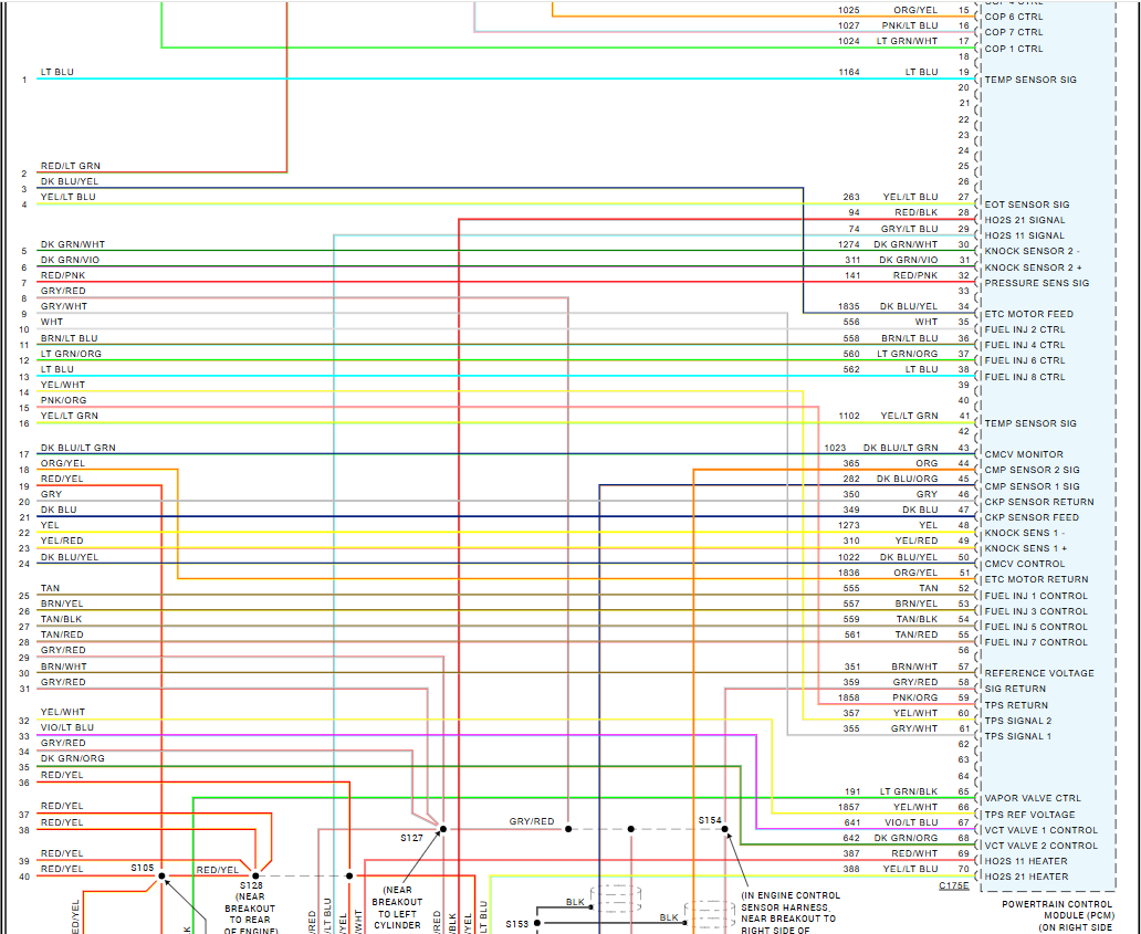 Vehicle is a 2006, have since learned that it is a 2010 engine. Have no cam sensor signal bank 1 and appears bank 1 sensor 1 is stuck lean. Have swapped 02 sensors with no change in performance or voltage on bank1. Supposedly cam chains and factory phasers done not long ago. Power balance test on scan tool shows all cylinders on bank 1 have low readings. Wire colors/PCM pinouts for cam sensor and 02 sensors don't seem to match vehicle schematics. Questioning if 2010 wiring harness was used with with 2006 PCM. Looking for wiring schematics for 2006 and 2010 Expeditions/ F150. Also 2010 F150 was supposed donor vehicle for engine swap. Wiring schematics for cam sensors and 02 sensors and testing procedures for sensors. Questions of where wires terminate at pcm and what other sensors they may tie into.