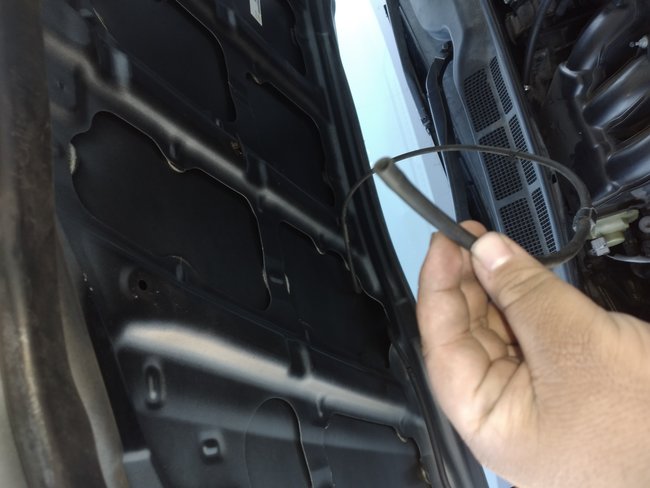 I have a hose or cable that starts from the passenger side. The thing seemed to have somehow disconnected from where it was supposed to go to. I'm not sure where it need to be put. Any idea of where this would be plugged into?