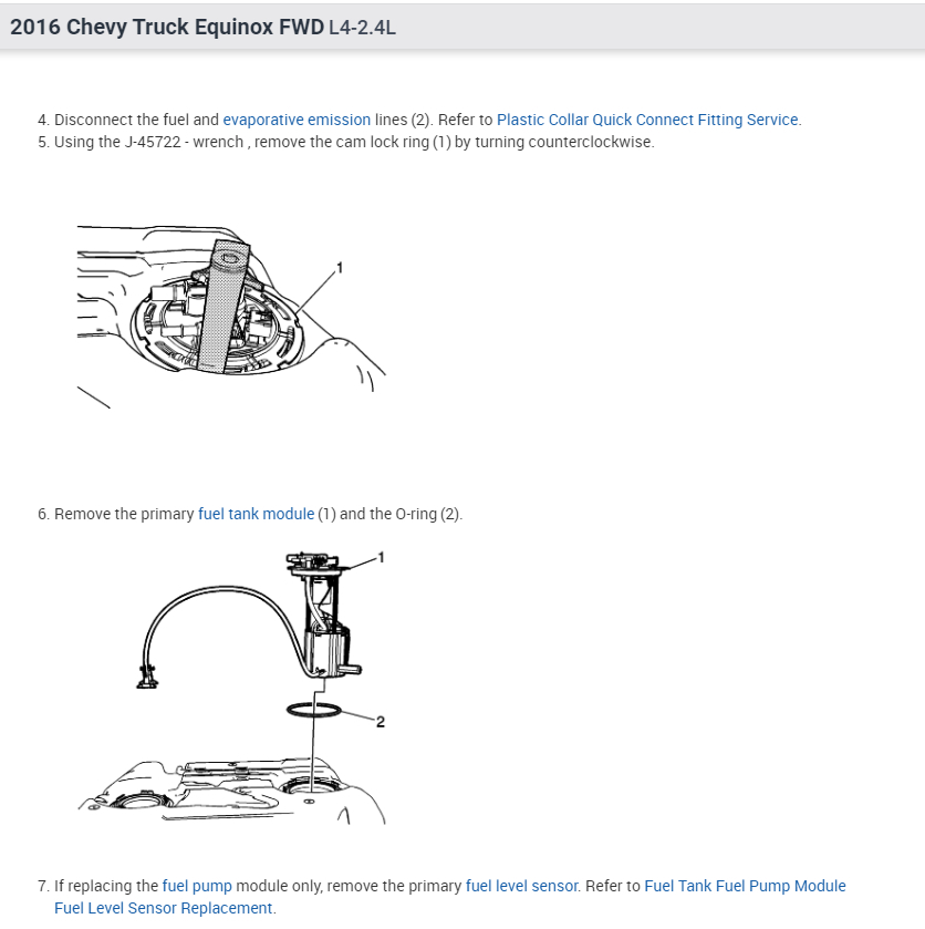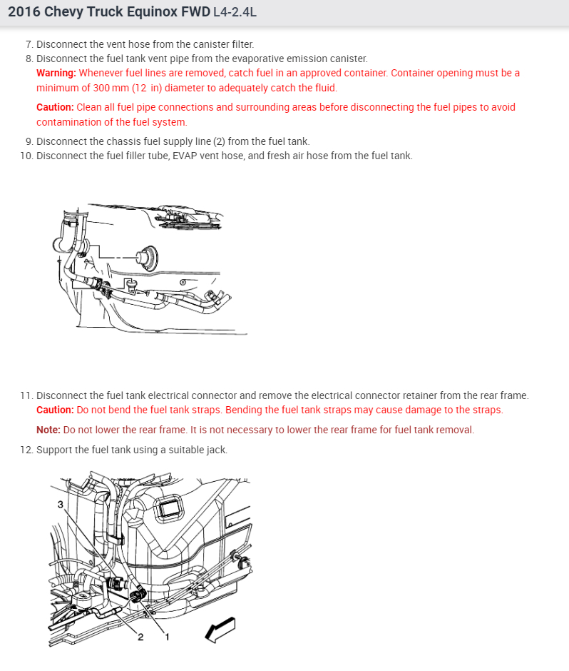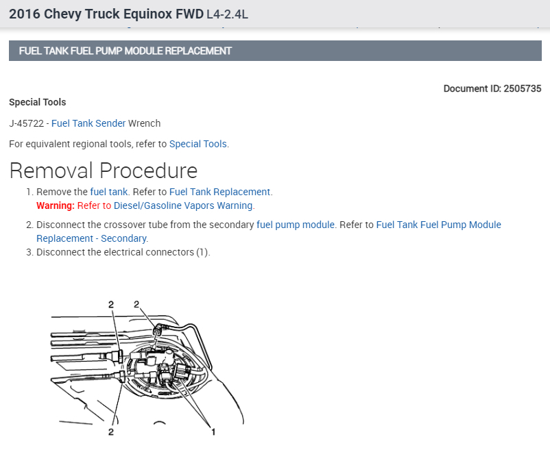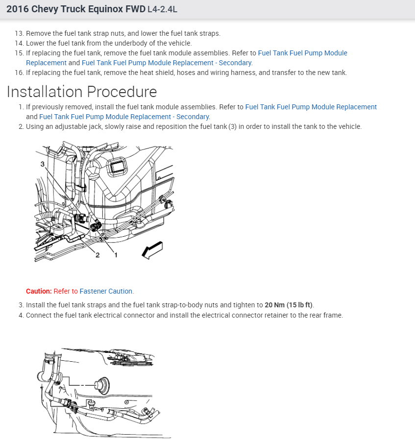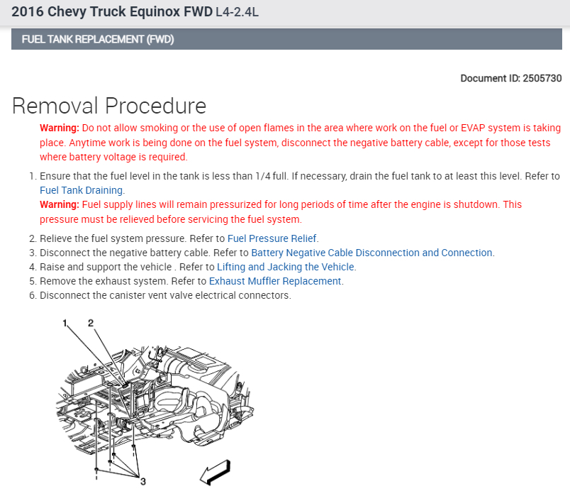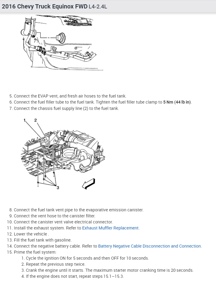 I have attached the fuel pump, fuel tank and exhaust removal and installation procedure below for your reference.