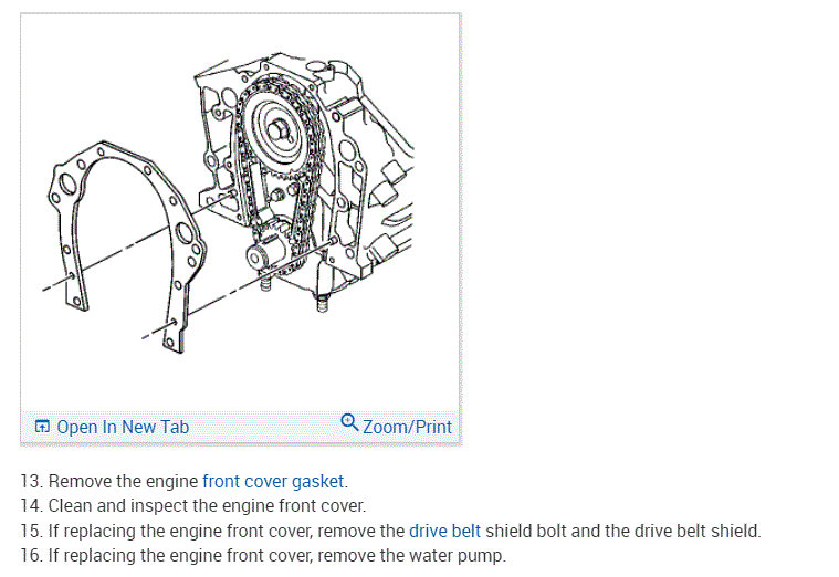 I attached the directions below for replacing the timing chain front cover. You aren't replacing the part, but it provides directions for the removal and replacement.