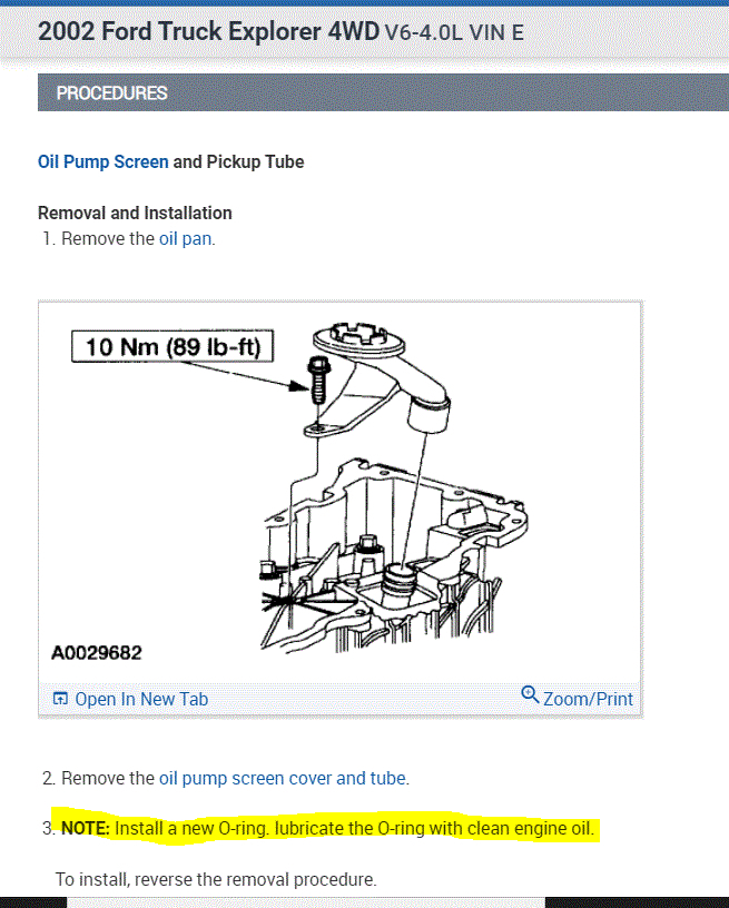 Once you reach the oil pump, it is just a matter of removal and replacement. The new pump will likely not come with the pick-up tube. Make sure to replace the rubber o-rings where it connects. Also, make sure to lubricate any rubber -o-ring with engine oil prior to reinstallation.