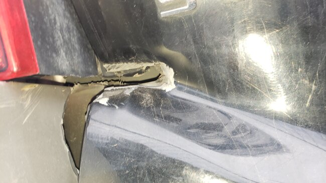 I was hit by 40ft lift genie in forklift configuration carrying a trash box. The guy hit me pretty hard at an angle in the rear of my suburban. The forklift blade went through the tailgate outer shell then cut a 7-inch cut into my frame. How much force would it take to go through tailgate shell and cut the frame?