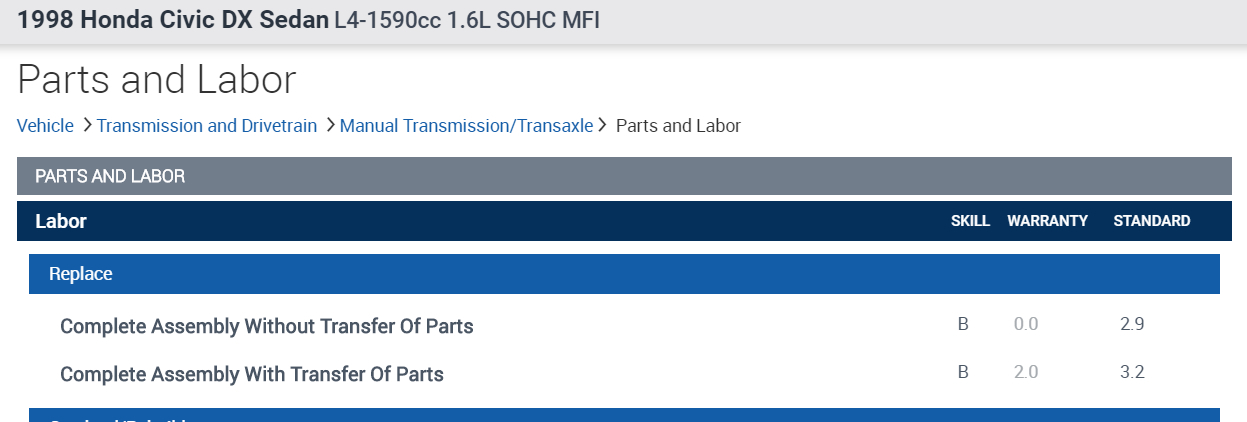 I attached the labor time for removal and replacement. The only difference is if it's a complete assembly or a transfer of parts. See pic 1.