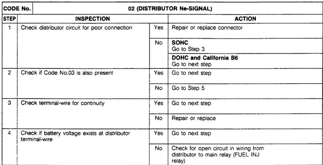 A faulty "Ne" signal will set malfunction code 02. A problem with the "G" signal will set malfunction code 03. Refer to Computers and Control Systems for diagnostic information.