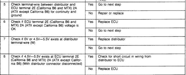 In the electronic engine control system utilized on this vehicle, two signals generated by the distributor crank angle sensor are used by the ECU in its calculations for various outputs. When problems with these signals are detected, malfunction codes are set and can be retrieved from the on-board diagnostic system.