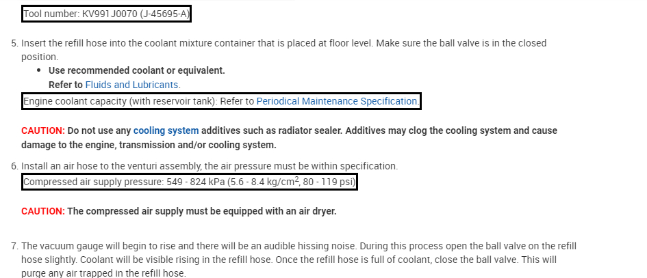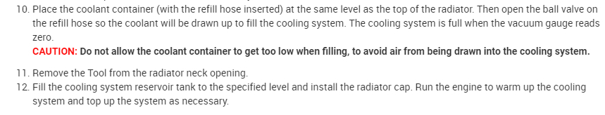 I attached the refill procedure and noticed it requires a special tool. It indicates first vacuuming the air from the system and then allowing the vacuum to draw fluid back in. I attached the directions below so you can see them.