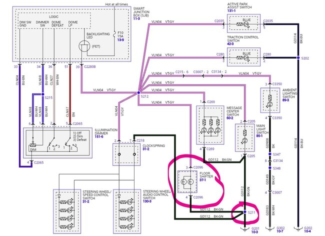 If the other switch lights work, i.E. The light switch, traction control and the ones in the steering wheel the issue is likely in the wiring to the lamps. I would take a test light and use it to test the power and ground at the lights. Get access to the bulb sockets, turn the lights on and turn the dimmer up. Now use the test light connected to ground and test for power on the violet wire with gray stripe. If you have power the ground side (black wire with green stripe) is the problem. If the ground tests bad, you could just run a jumper for the ground.
