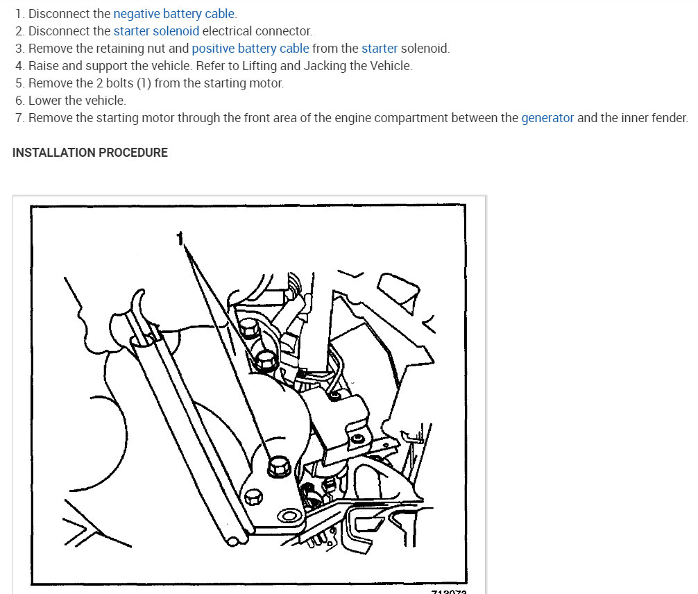 Need a diagram or something showing the proper way to remove a starter from the vehicle listed above. I have been walking to work for the past week and a half, please help me fix this. I know where the starter is just not how to go about it and what to do first. It was very rusty underneath, so I might have to take it somewhere just for that to use air tools. Thank you in advance.