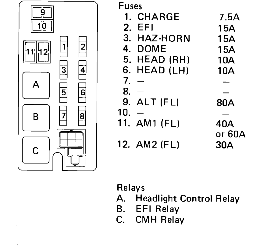 Let check the cluster fuse (#5) first here is a guide to help us get started. The fuse location and identification are in the diagrams below.