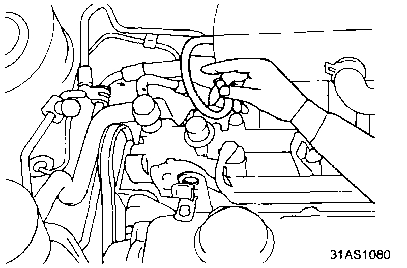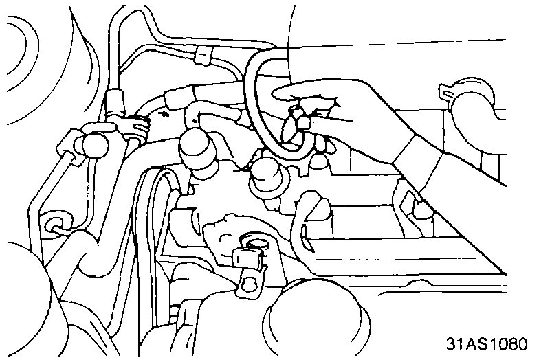 7. Disconnect the vacuum hose from the pressure regulator and plug the hose end. Measure the fuel pressure.