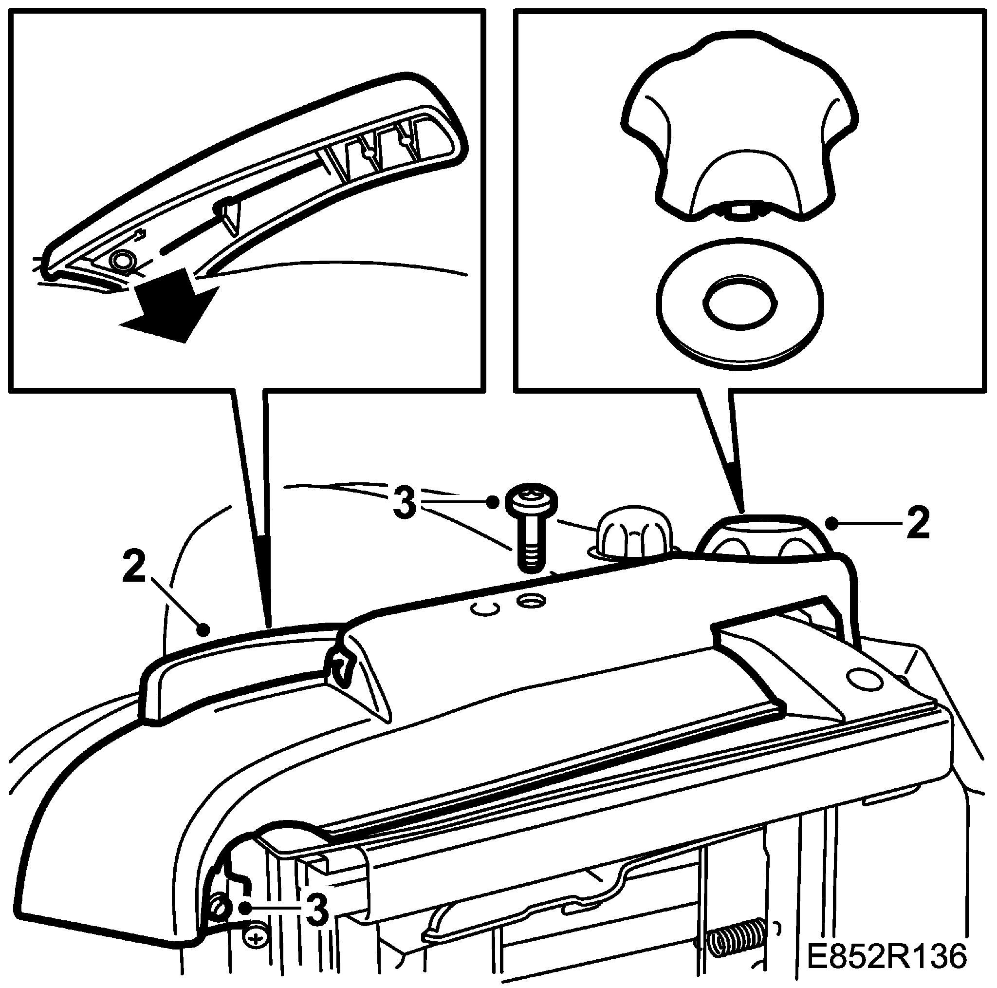 25. Slide on the seat cowl trim, being careful to make sure that the washer is still in place (in was held in place by some tacky glue on mine) in the middle of the side of the trim (where the round plastic cover is). Screw the side on first making sure the trim seats properly at the rear of the seat area where the adjustment knob goes on and at the front, under the seat, where the trim has a tab that goes under where the screw goes in. Then screw on the front torx screw that is under the seat.