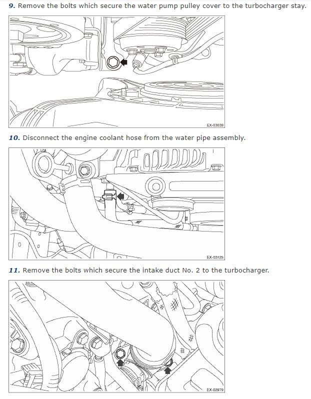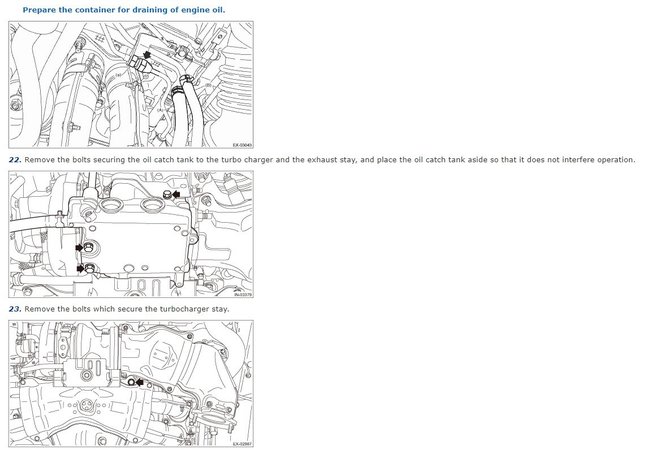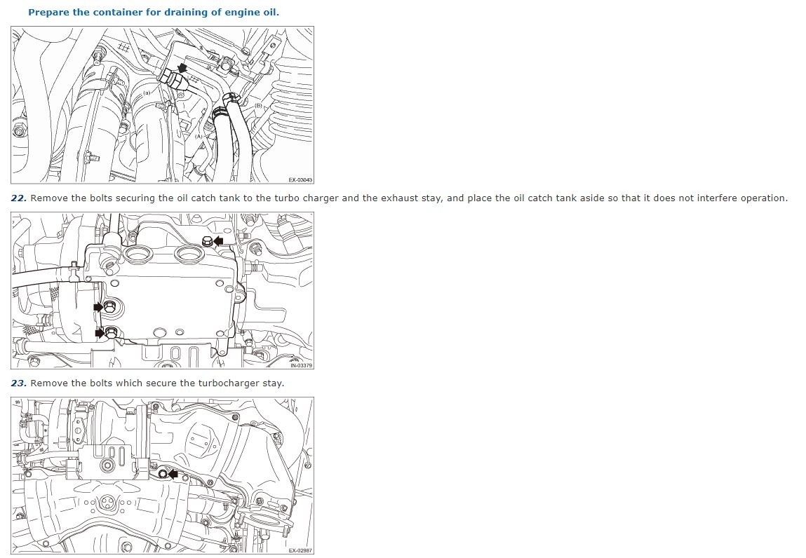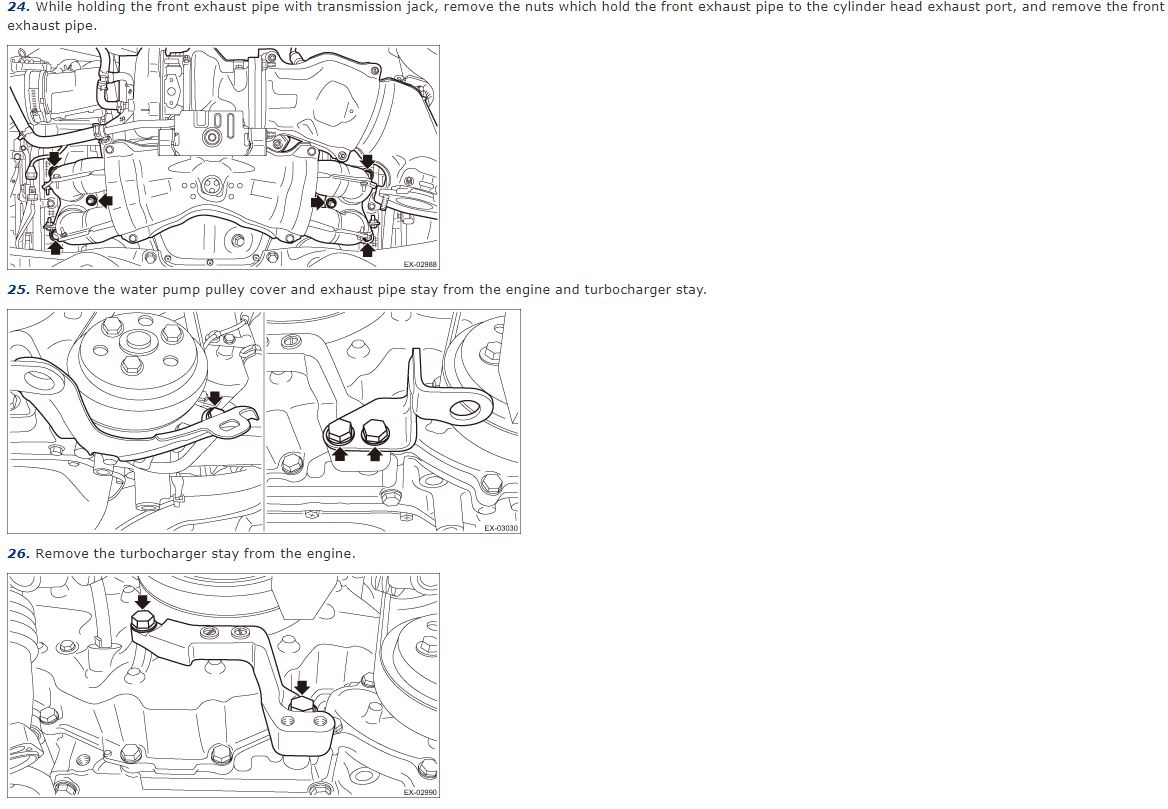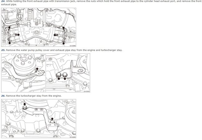 I am trying to separate the turbo along with the twi exhaust pipes that attach to the side. I removed all the hoses, bolts on the exhaust, 3 bolts on front of the engine, and any oil or coolant hoses. How is this supposed to drop? Is the turbo bolted to the engine from the bottom as well?