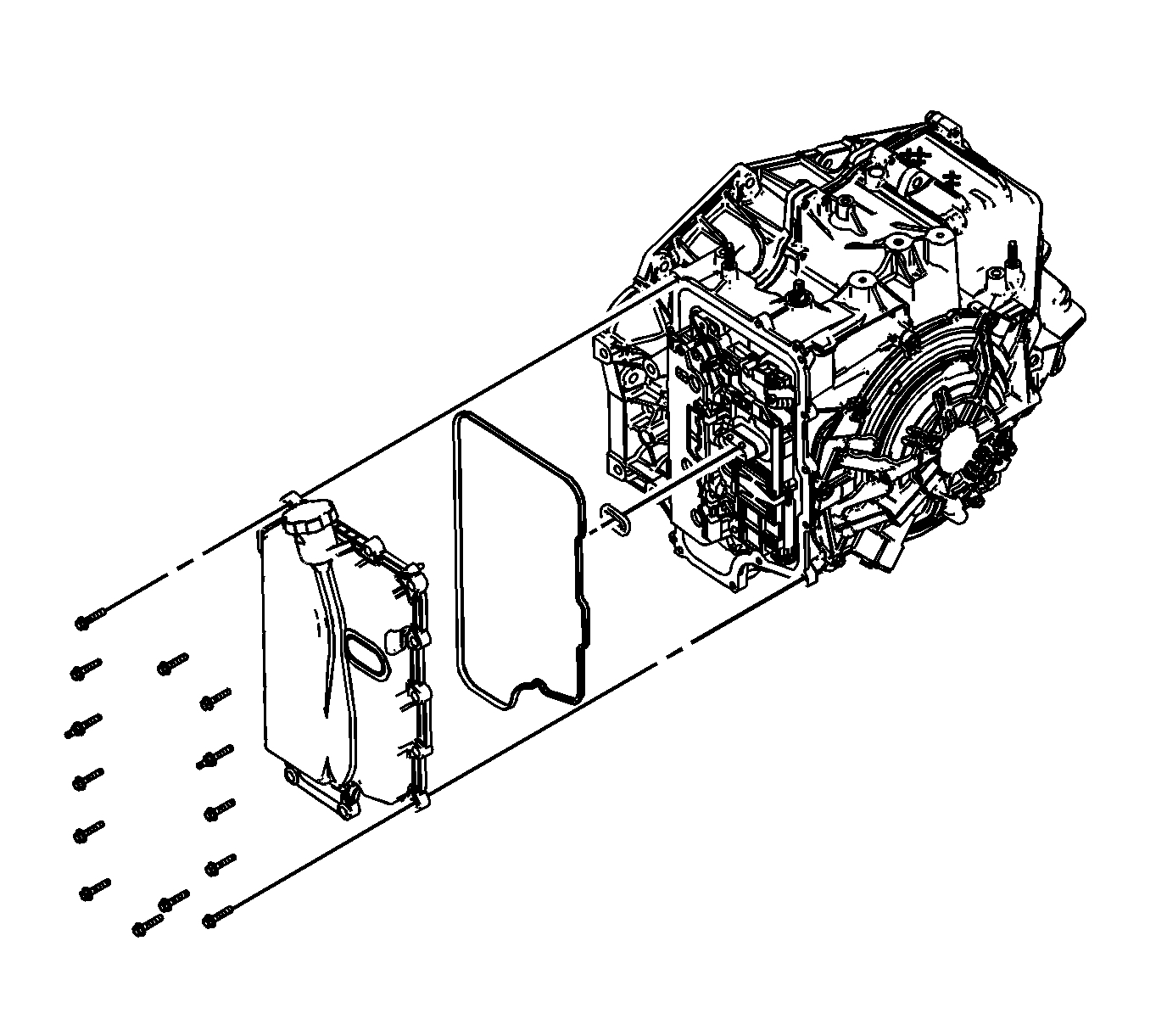 13. Remove all traces of the old gasket material. Clean the transmission case and control valve body cover gasket surfaces.