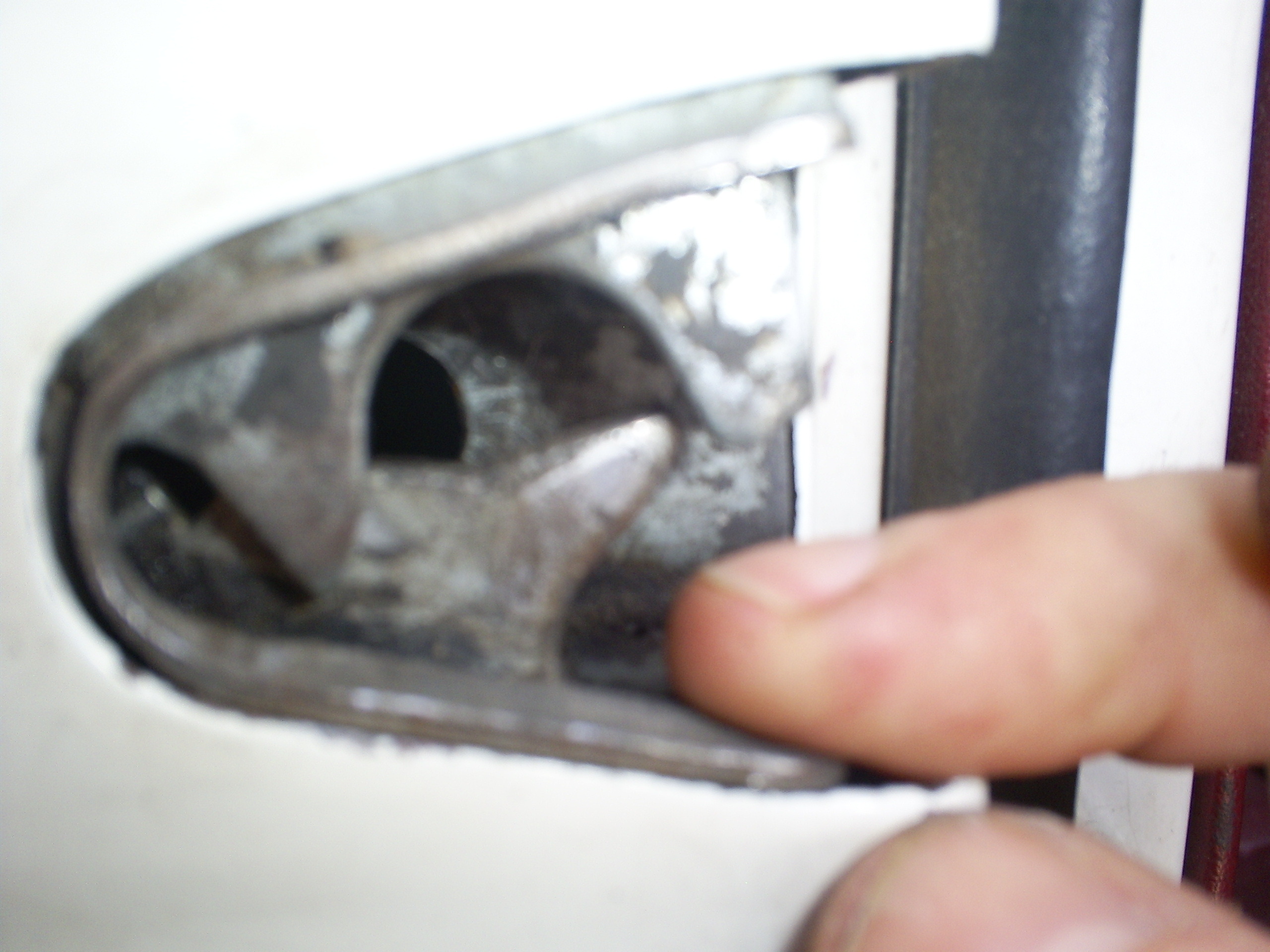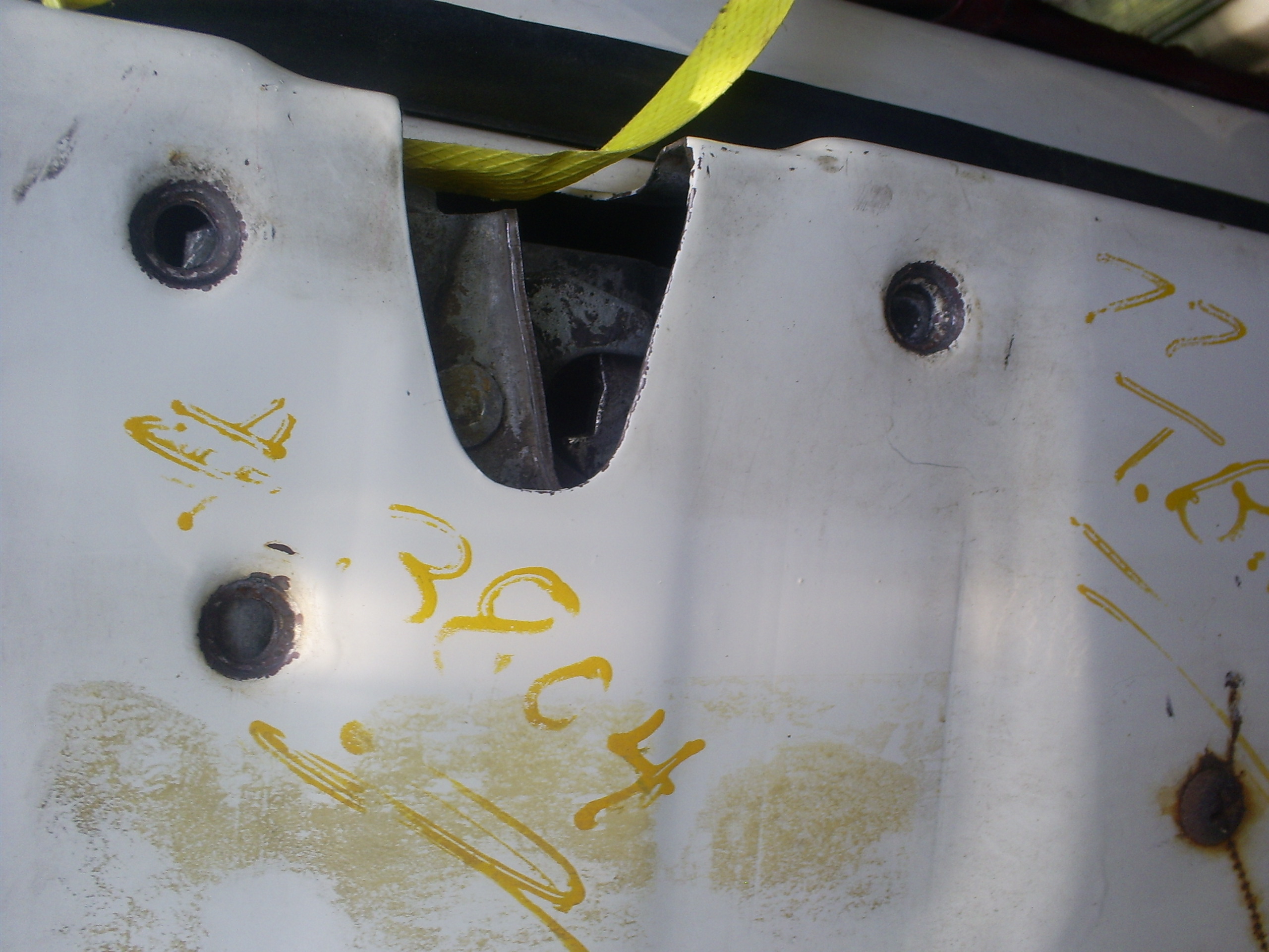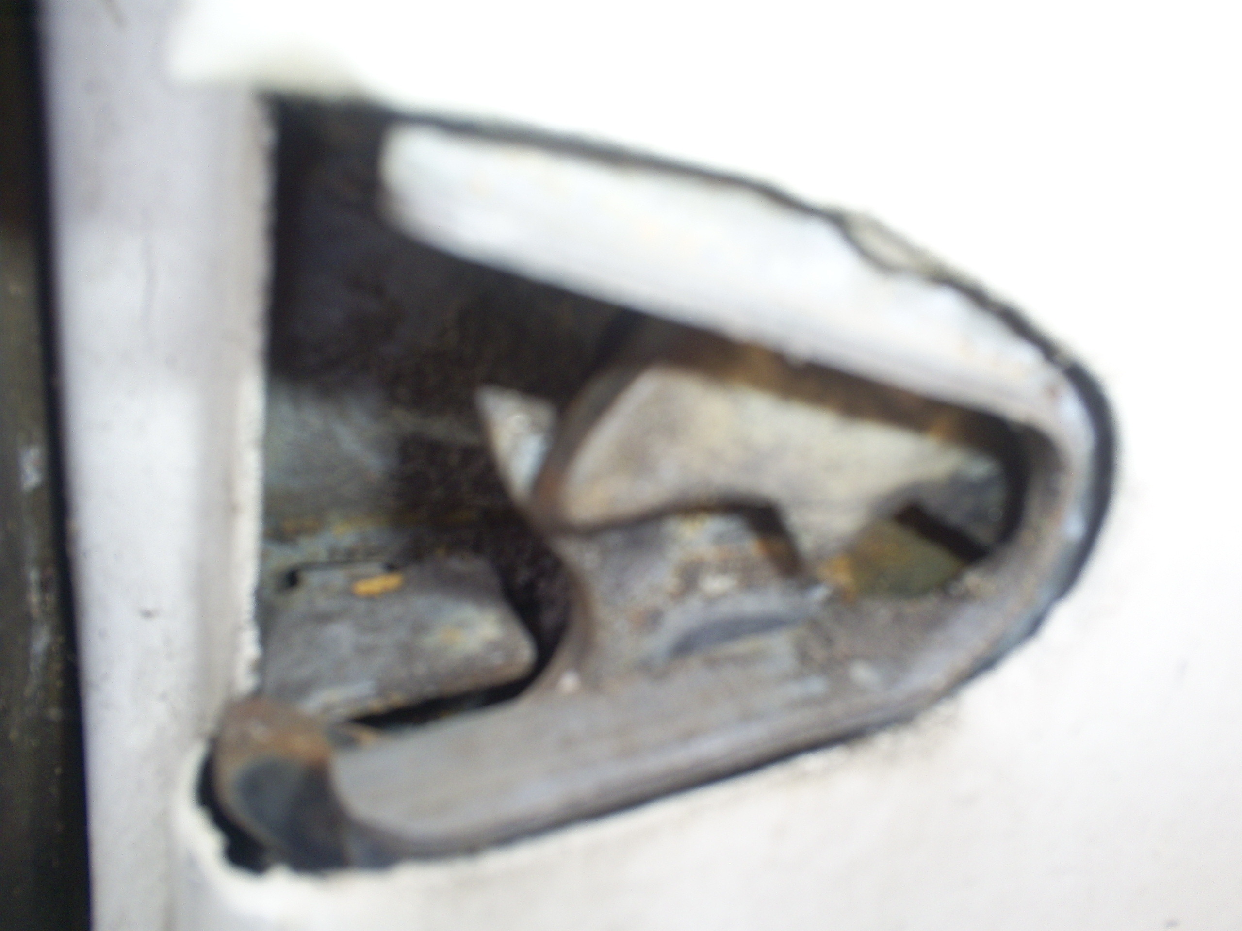 Where do I pull the latch out? Are you saying that I should pull it out of the hole in the picture? I can line up the holes back while it is in there so should I get the bolts & try to screw it in again. It worked fine & then started rattling & then when I got home it would not close.