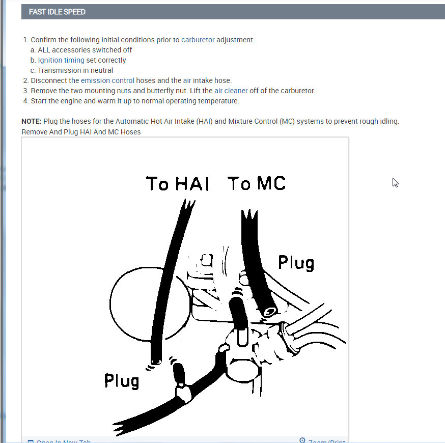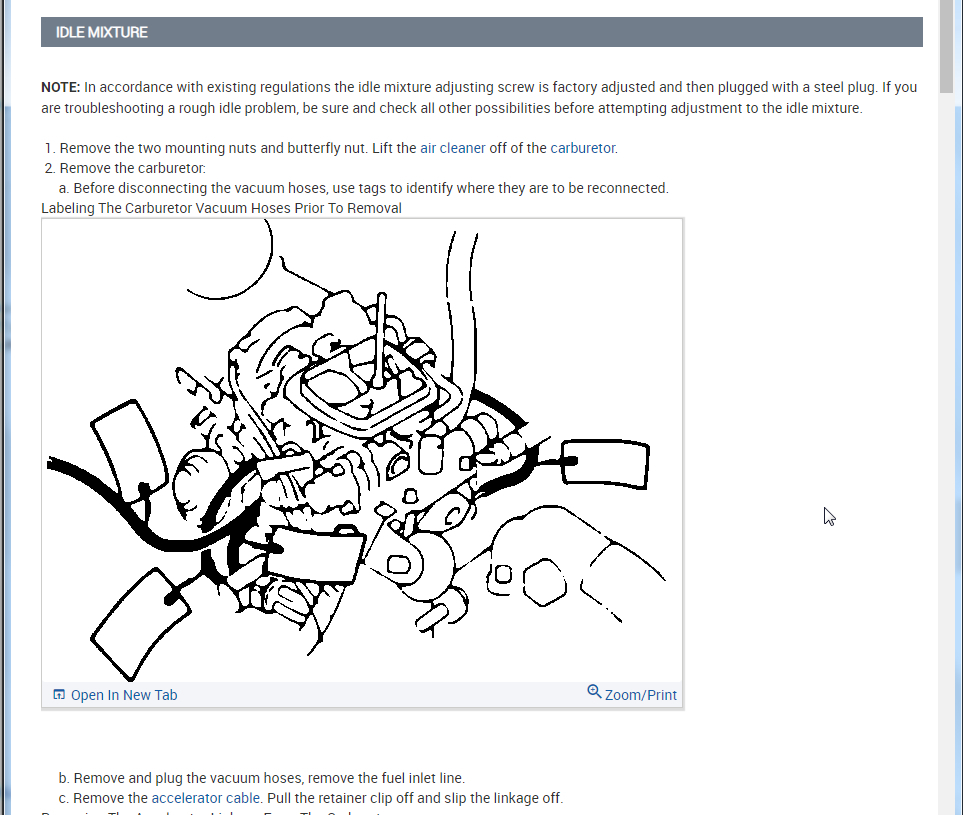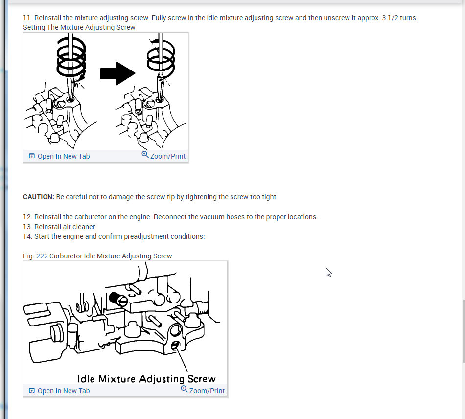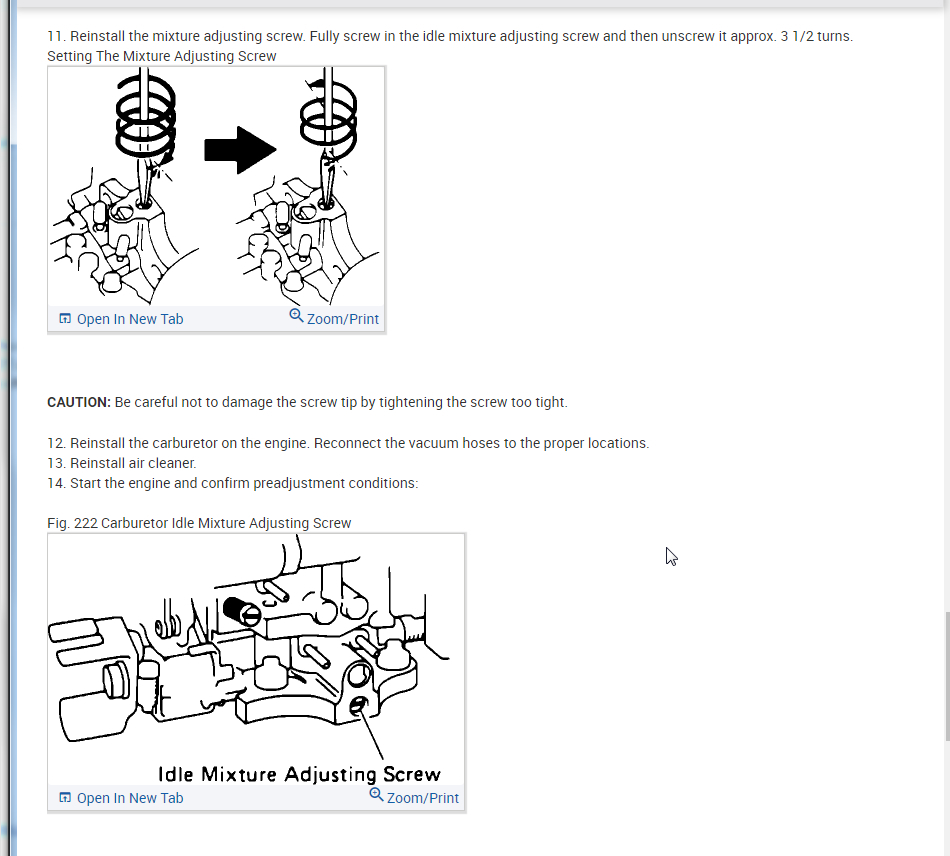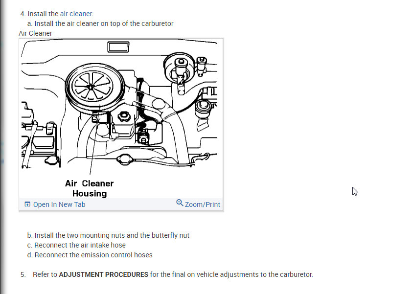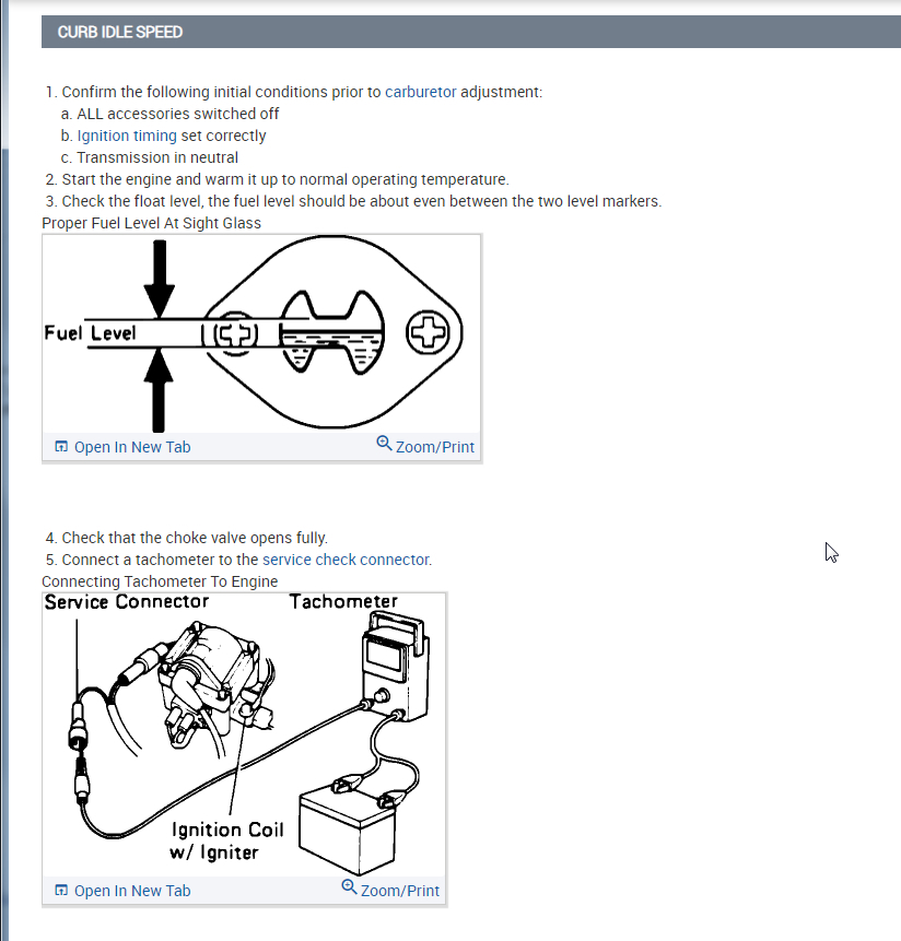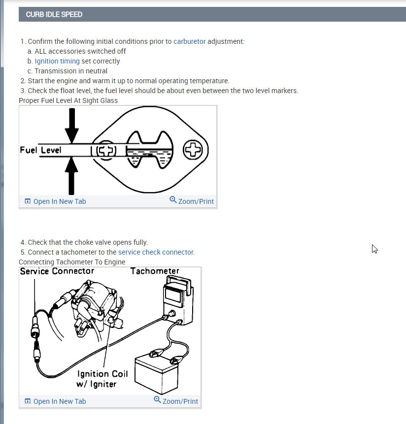 I attached all the info below on how to remove and install the carburetor. Then I also attached the info on idle, curb, and fast adjustments.
