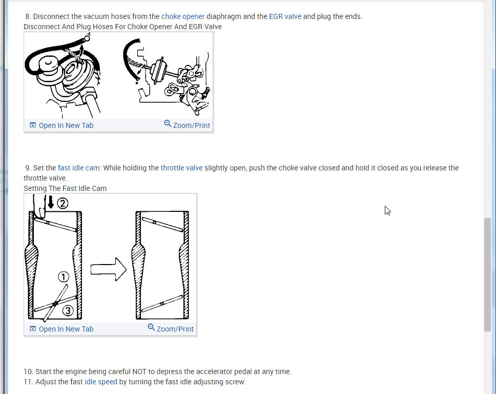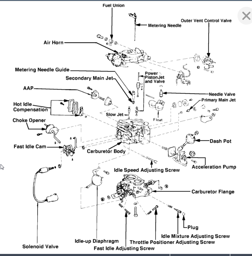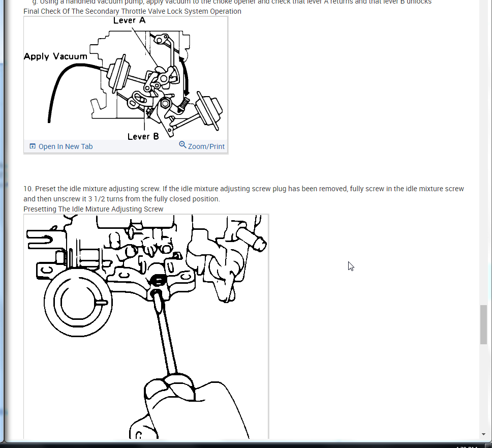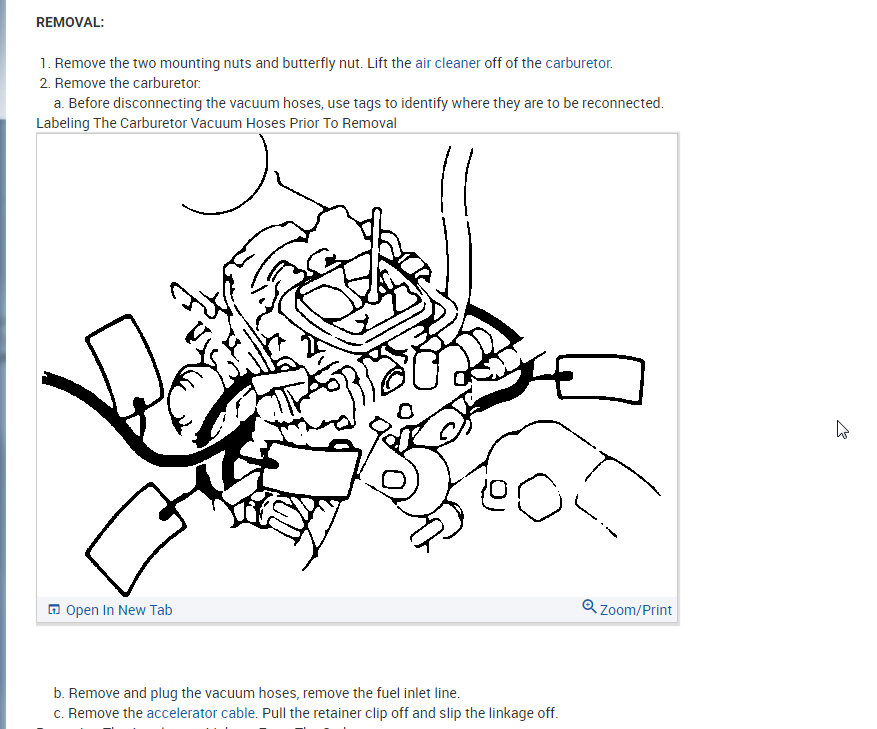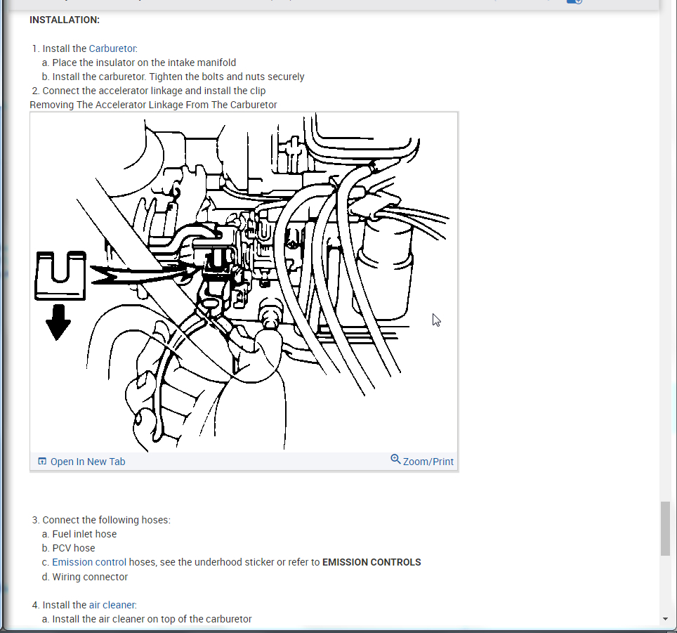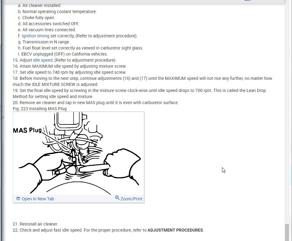 I attached all the info below on how to remove and install the carburetor. Then I also attached the info on idle, curb, and fast adjustments.