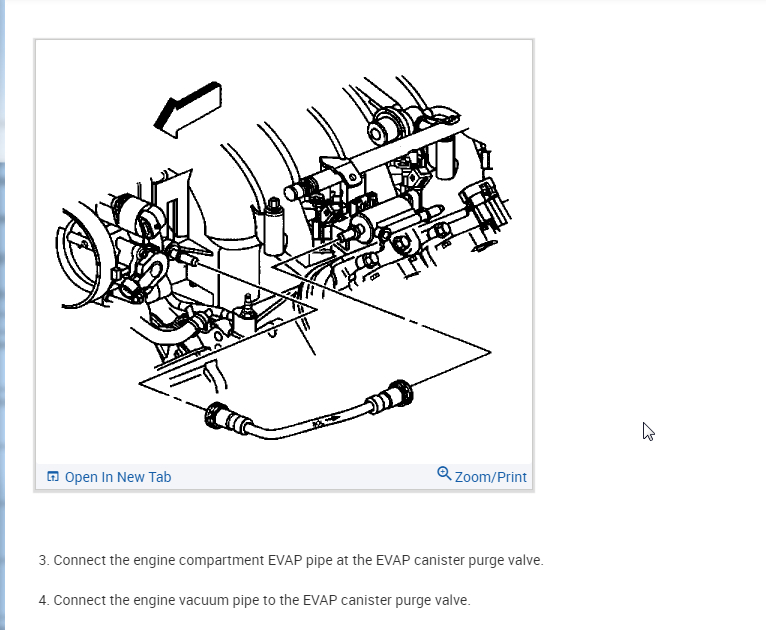1. Disconnect the EVAP engine vacuum pipe from the EVAP canister purge pipe.