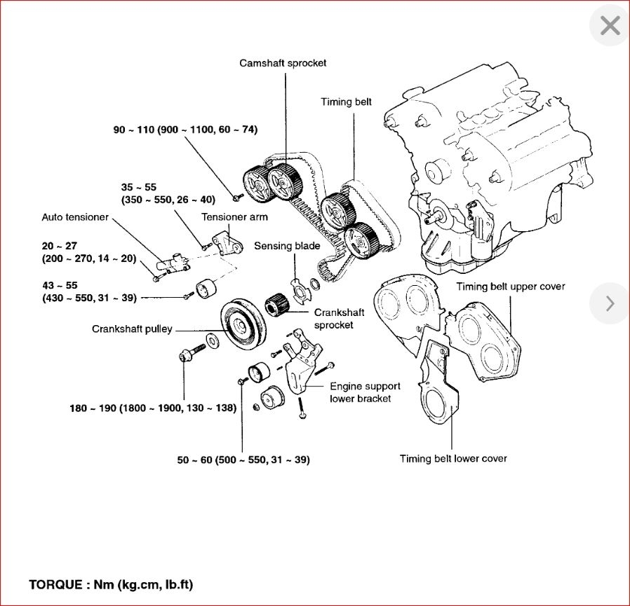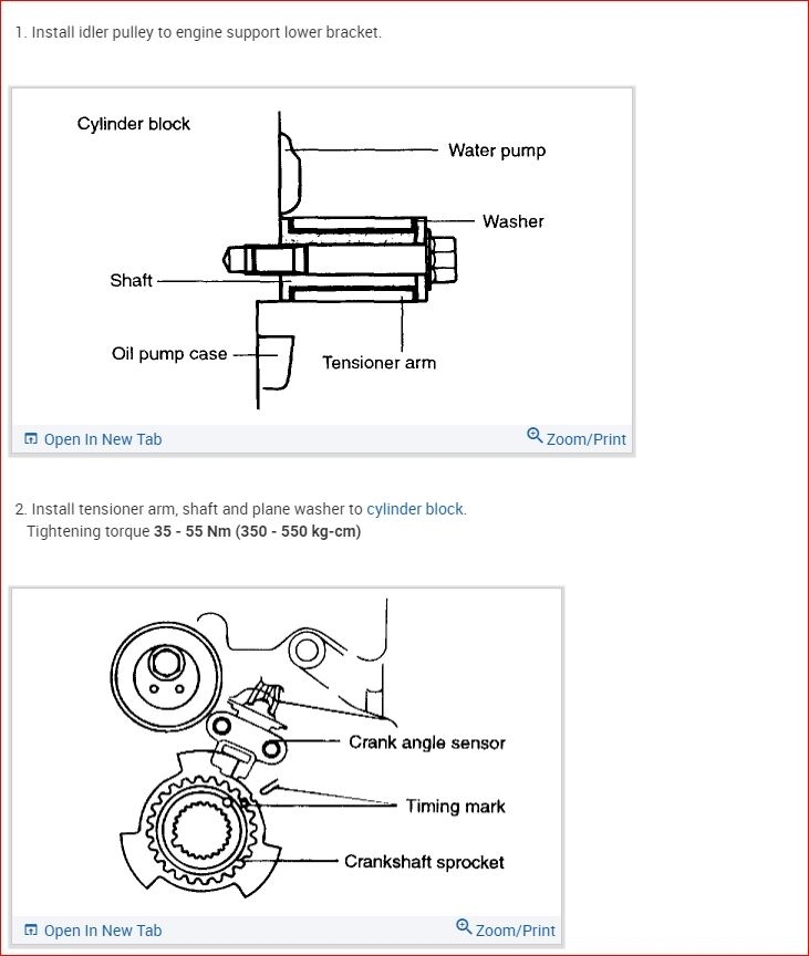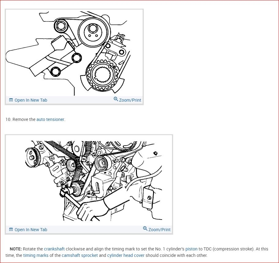 I attached the procedure on how to replace the belt. This covers alignment marks. There is a special note that you should not turn the engine using any other than the crank pulley when the belt is on.
