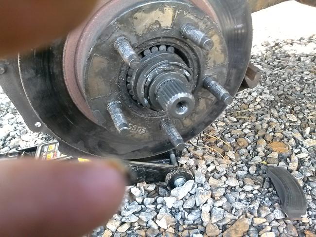 I'm trying to replace the bearings on my truck but can't seem to get the hub off. There is no cotter pin to remove. I even took brake and caliper loose to get to rotor and pull that way. But to no avail. So now what do I look for?