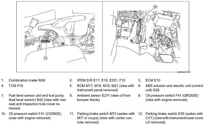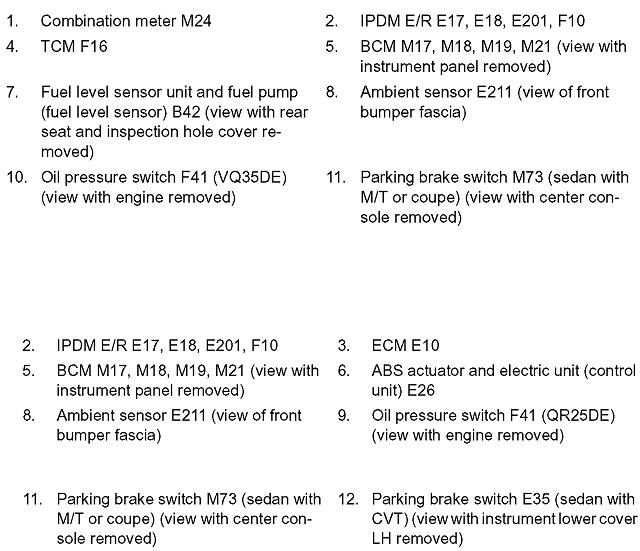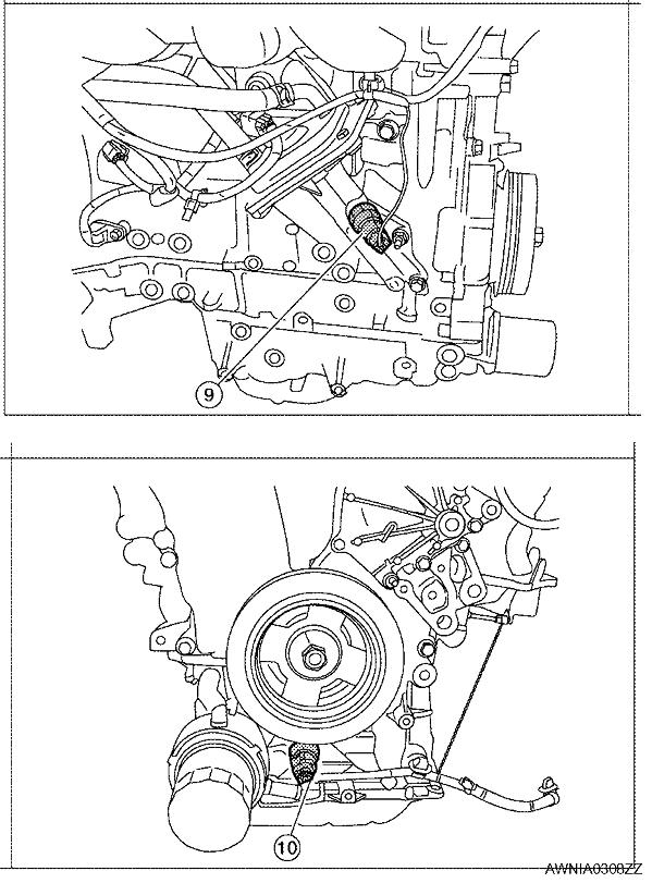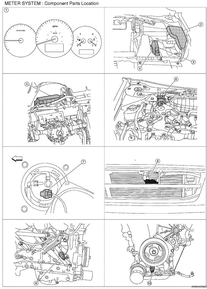 The first two drawings show the locations of various sensors and switches. The last two drawings are just part of the second drawing, and the list, enlarged to make them easier to read. It looks like the lower drawing, showing item #10, is for the 2.5L engine.