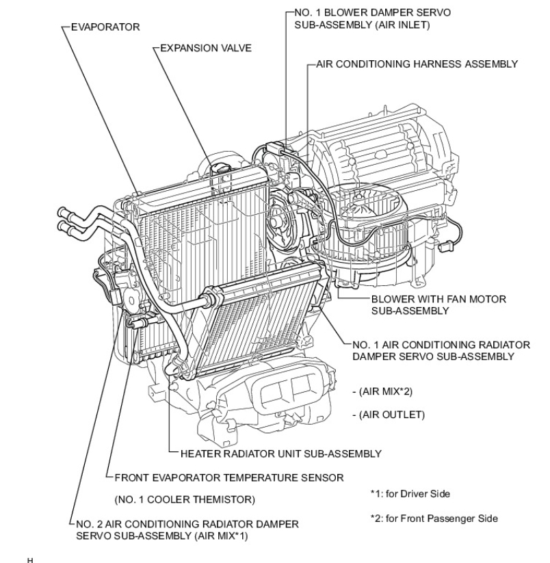 My wife’s car listed above is an LE model. The HVAC system started having a delayed start after turning on the vehicle taking 30-60 seconds before turning on. Once the A/C is on, it defaults to defrost and always blows on the feet. I’m able to change the air a bit to blow on the face but no matter the setting it always blows on the feet. I checked the blend door actuator located next to the blower motor under the glove box but that one controls the temperature and worked properly. I believe the mode door actuator that controls the air direction may be failing but I’m not sure how to find it. I also noticed a buzzing/clicking noise that changes speed when I change the fan speed. I took 2 videos showing how long the delay is and the second shorter video shows the clicking noise.