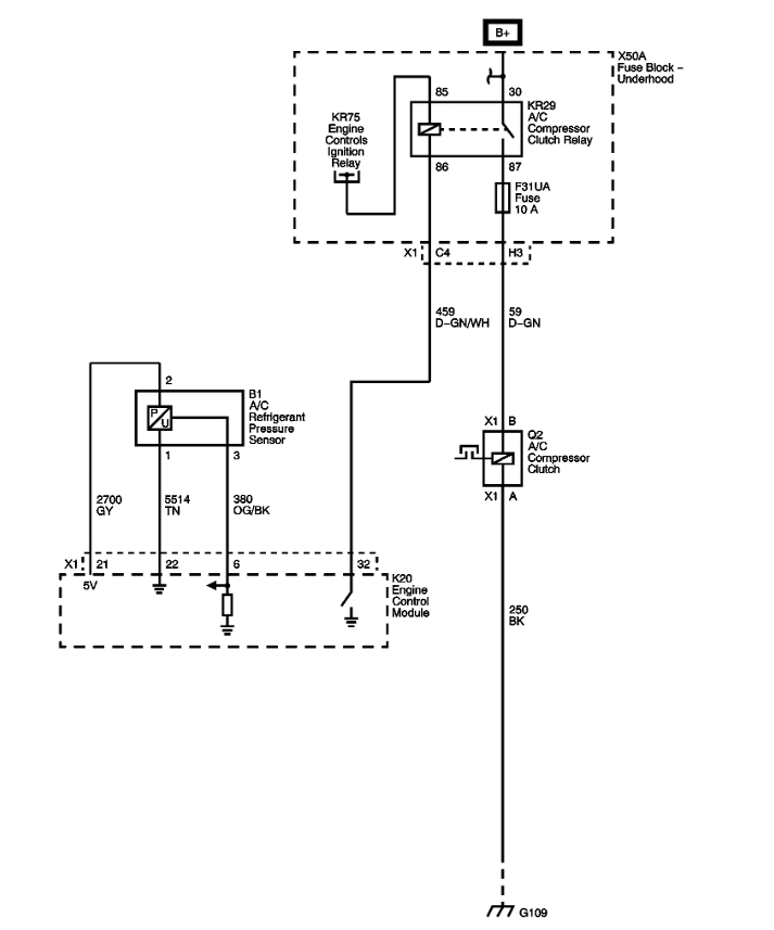 The vehicle listed has a 2.4. The air is warm. Static pressure on high and low is 150 PSI running pressure is the same. Compressor clutch does not engage. Verified the vehicle A/C command is active. Verified all controls on faceplate are functional. All temperature sensors are accurate and functional. Ambient temperature is 86f.