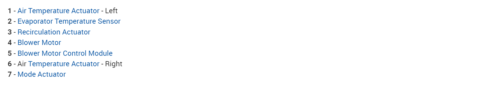 I just wanted to put this up too so you can see which actuator doors do what. It looks like #7, the Mode actuator door is probably the one that divides the two sides for separate temperature settings.