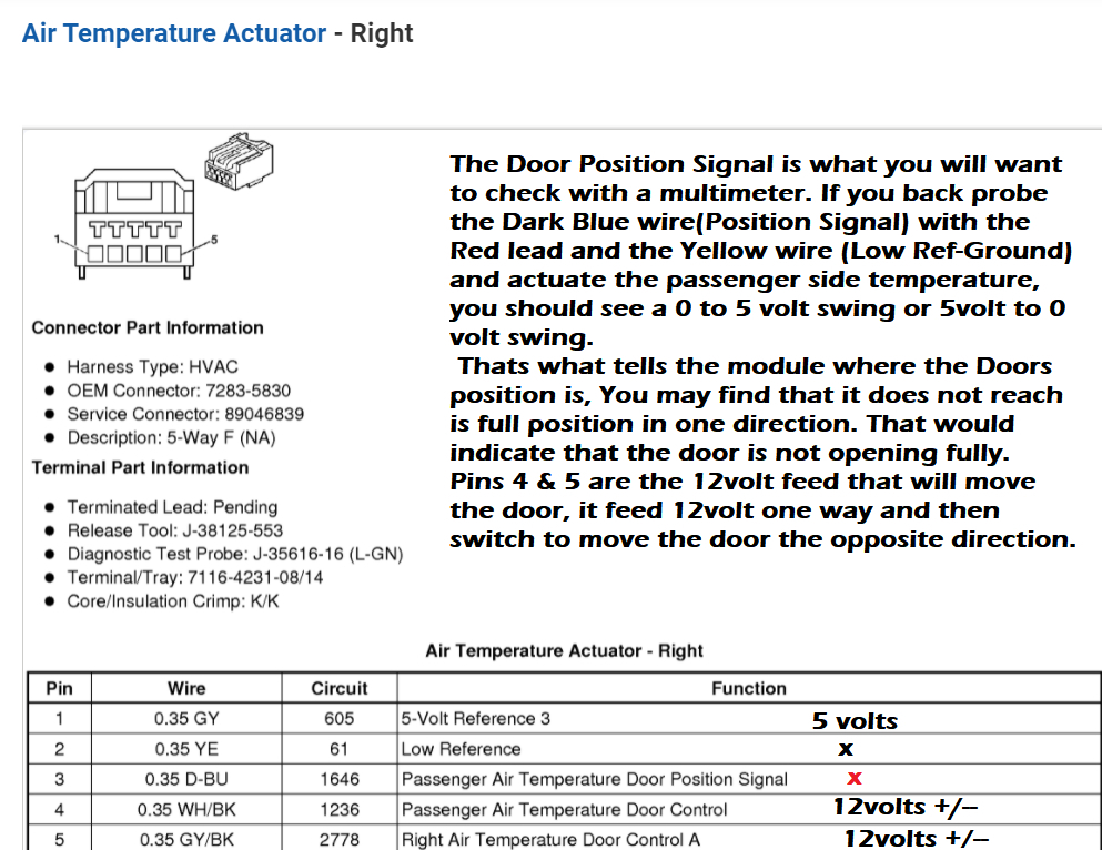 Were you able to see if the passenger side actuator was opening the door the full range or was that just the driver side that you checked? I have the diagrams pulled up here for the Auto HVAC system. There are four doors in total.