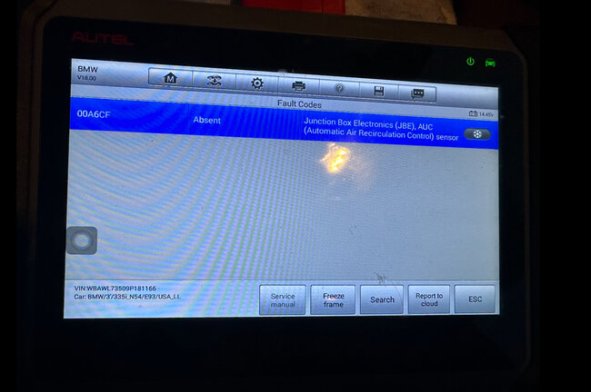 My son's car. It has gotten super cold here and it may be a coincidence, not sure. But the heat would just cut off while driving everything stops then comes back. But the main problem is that when you turn the speed dial too high it does not blow full power, so he can hear the blower change speed but the amount of air out of the vents is the same. Blower speed changes fine. Found this code.
