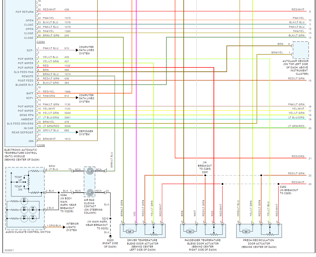This picture looks backwards for some reason. So, the temperature blend ones are on sides, which I can access by hand, I tried turning them and it didn't make a difference now I know they are temp blend ones. Another for recirculation is by blower. The last 2 are hidden. So am guessing the one u marked is one of them and the other is for the foot. Are these numbers corresponding to part number? Based on the codes I got, 2 of them which do you think are bad?
