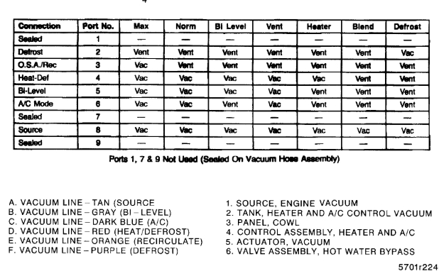 These particular 9-port vacuum valves are almost impossible to find new, no third party makes them anymore. Yes, I can find them used, but at this point and time in this project I simply bypassed the vacuum valve and went source to MAX. This seems to fine for me now. The vent works, the heat works, the fan works, etc. I just won't have windshield DEF.