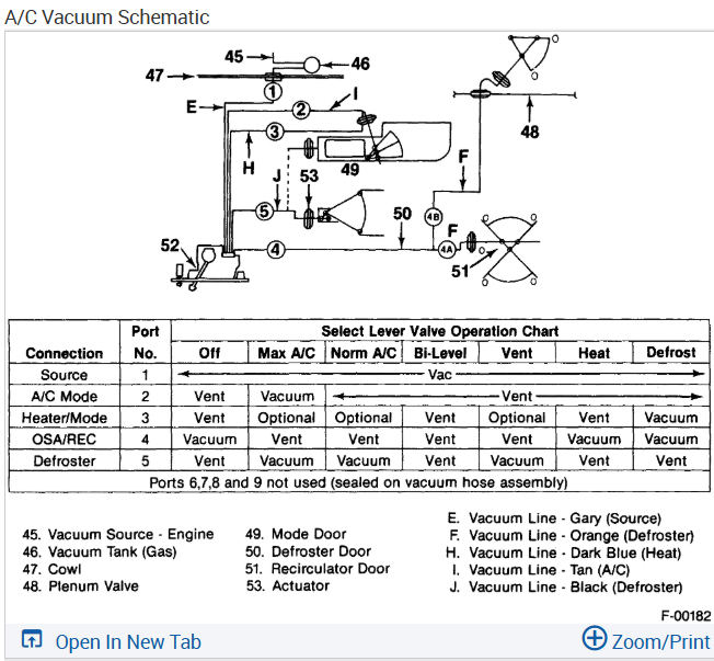 I have found only one decent vacuum diagram. It is for a 1982 K25 with ac. It shows the blue and tan vacuum hoses on the heater/ac actuator switched between the 2 ports from the way I installed them.