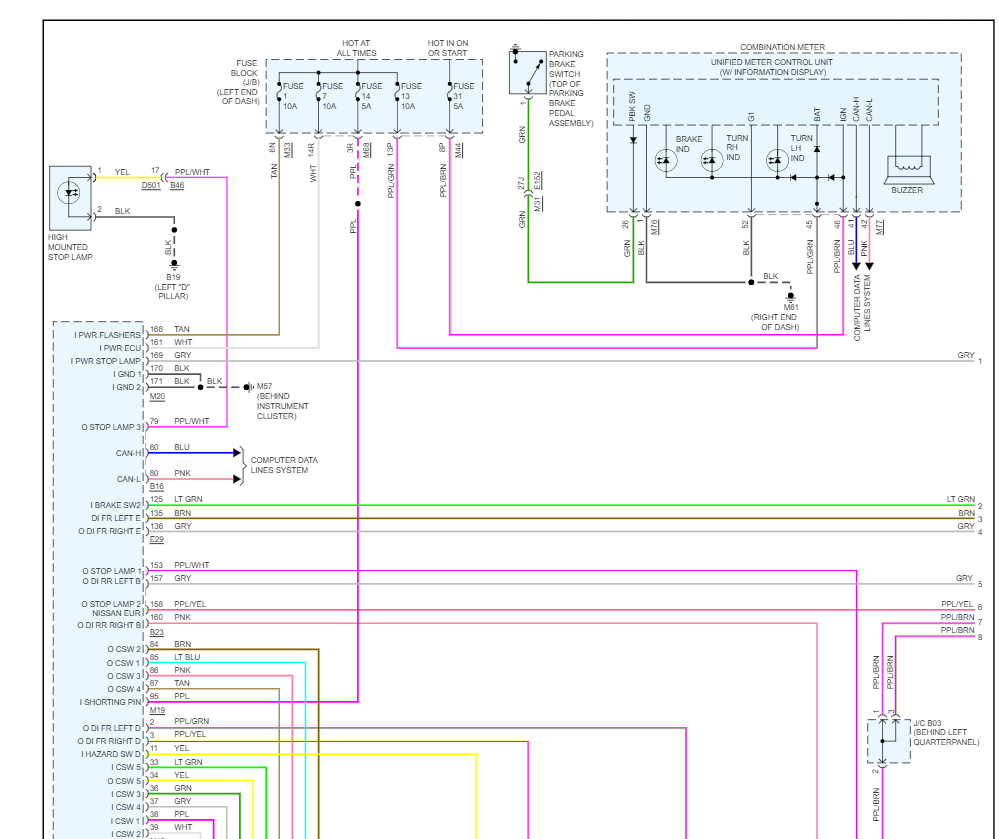 Did you change out the bulbs to LED? If not, I can tell you these vehicles have had problems with the IPDM, I have included the blinker wiring diagrams so you can see how the system works and how to change out the IPDM. To be sure what the problem is we will need to do a CAN scan which is easy, you can get a CAN scanner (Controller Area Network) from Amazon here is a video to show you how. Let's check the fuses # 1, 7, 14, 31 and 13 as well in the fuse panel on the left side of the dash