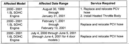 This bulletin describes the steps necessary to replace and relocate the PCV hose and install a heated throttle body on certain 2000 and 2001 model year Accents.