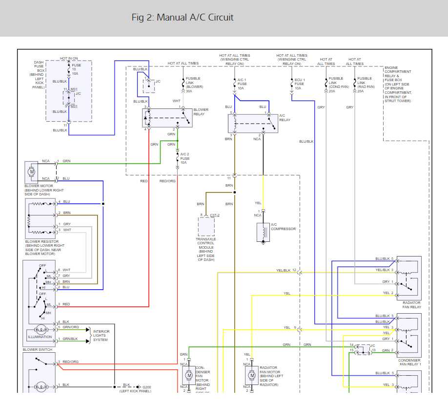 I have hyundai accent had a blow out when it happened it tore some of the wires out ive got everything working except the ac. There is one wire left it is red with a yellow stripe. Could that be the one to the ac. I didnt want to try it then something go wrong incase its not it.