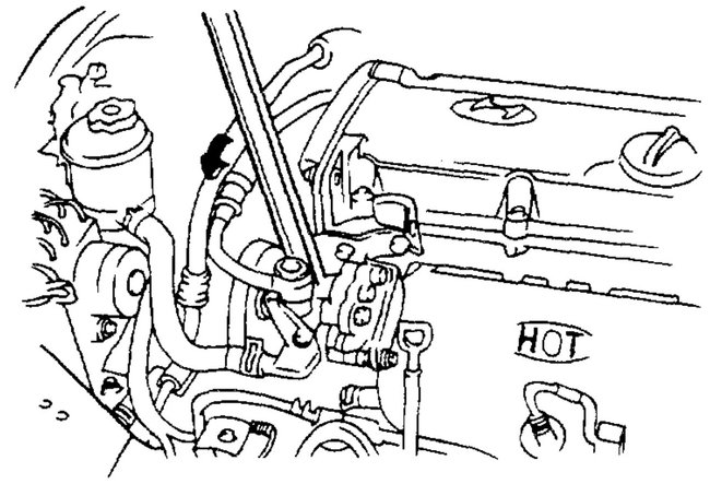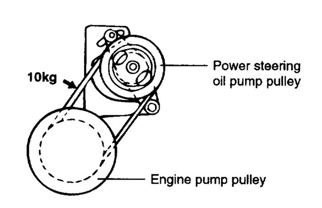 2. Put a bar or equivalent, between the bracket and the oil pump and adjust the tension so that the belt deflection is within the standard value.