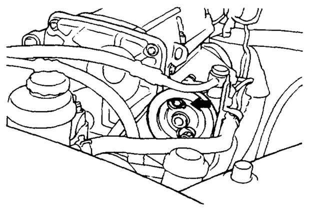 1. Loosen the bolt adjusting the power steering "V" belt tension.