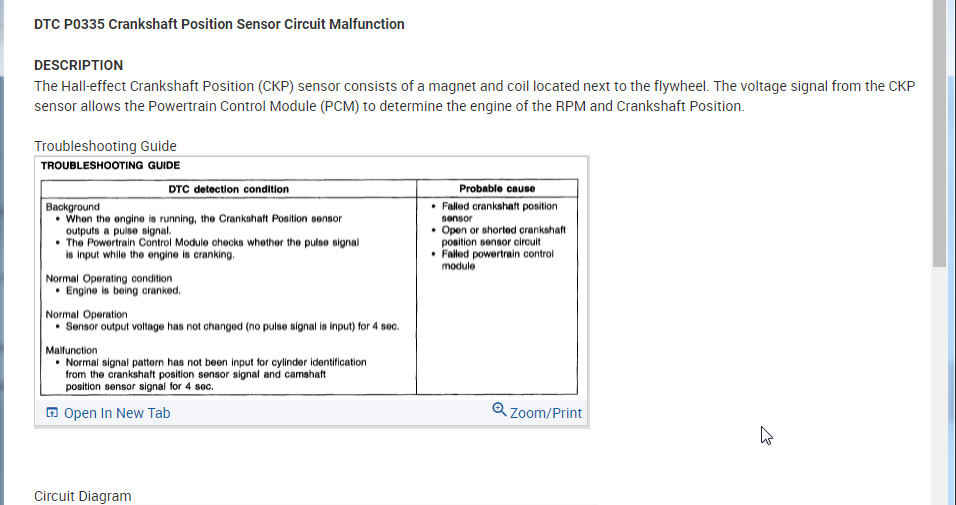 On my car, we were at a stoplight about to turn left and the car stalled out. It would not start right away, but after pushing it out of the way, about 10 minutes passed, tried to start again and it started. Went to a local car store and have them put on a free OBD-II and it came out with the code of P0341.